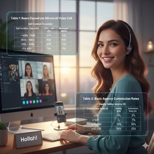 Anchors earn "Beans" through video calls, gifts from users, and weekly bonuses.